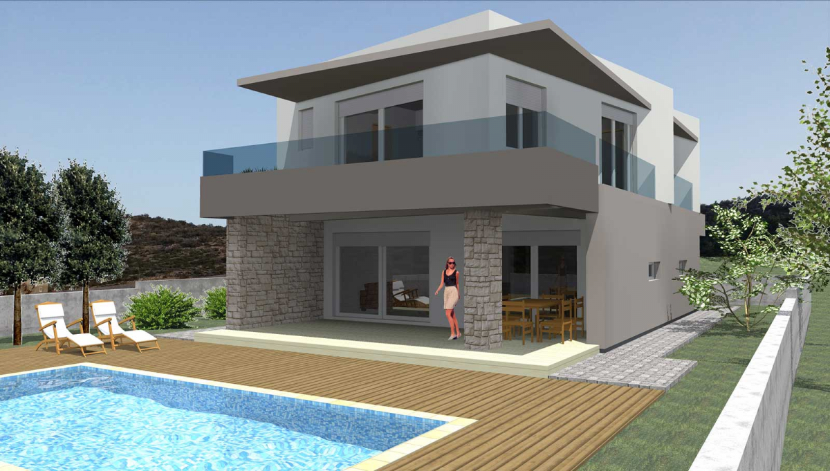 GRAĐ. BRUTO POVRŠINA: Stambena: 305 m2 + 145 m2 terasa, Pomoćna: 40 m2
